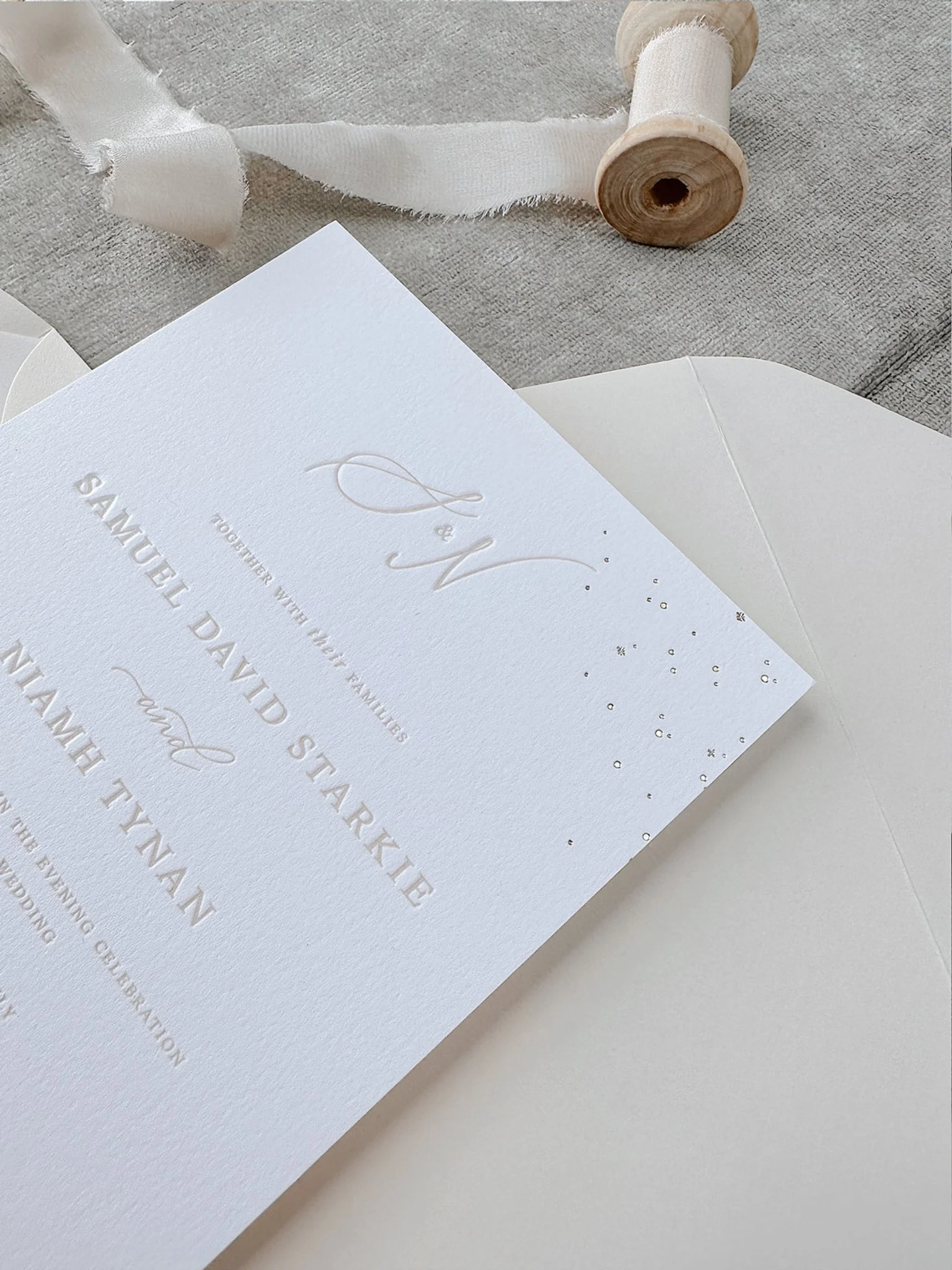 Take a look though my range of semi-custom designs and select the design which best suites your aesthetic. In each suite you can customise the Printing Method, Paper Type, Envelope Colour and Ink Colour. to make it personalise to you.